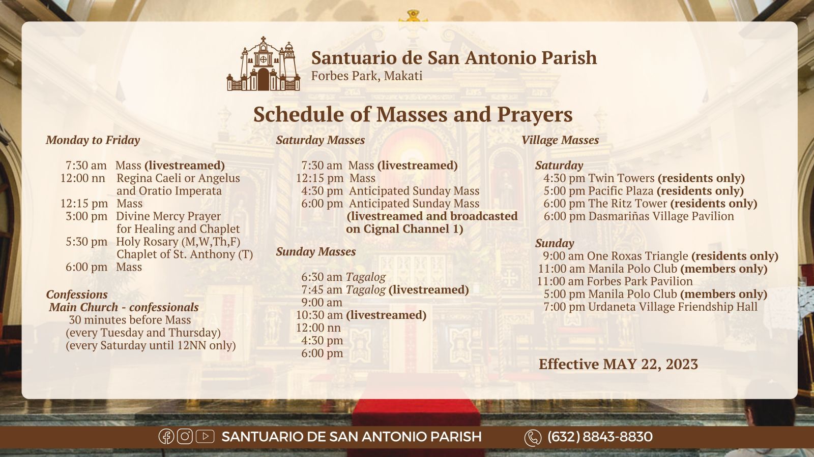 Masses and prayers are livestreamed on: