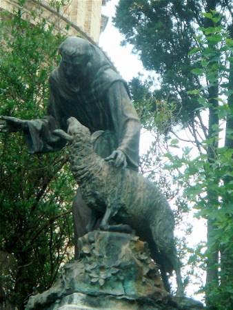 Statue of St. Francis and the sacrificial lamb in bronze Post author By Santuario de San Antonio Parish Post date October 4, 2014